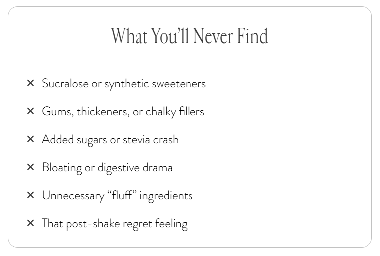 None! Clear Protein+ is sugar-free with no stevia, sucralose, or artificial sweeteners. It’s lightly sweetened with OnoSweet (a naturally fermented Reb M sourced from rice) for a refreshing, balanced taste.